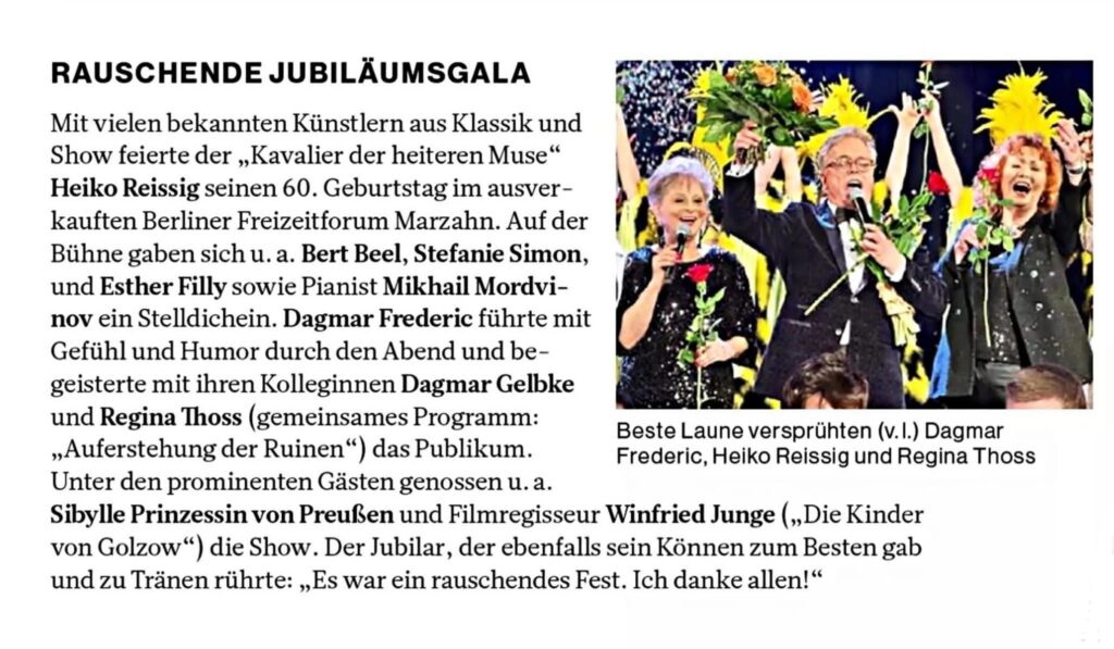 Heiko Reissig ist seit Jahren bei Freunden von Operette, Klassikshow, Konzert, Filmschlager und gehobener Unterhaltungsmusik beliebt.